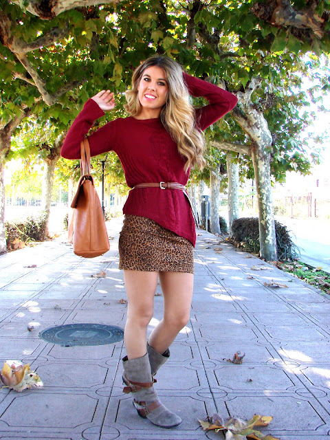 Hola a todos! ¿Qué tal el finde? Yo he ido a casa de mi novio, en Castellón, donde hemos hecho unas fotos súper bonitas que os iré enseñando a lo largo de la semana, además el tiempo acompañaba, ya que hacía un solazo increíble. Sin embargo hoy han vuelto las lluvias (aaarg) y el viaje de vuelta a casa ha sido horrible! En el look de hoy llevo un vestido de estampado leopardo que compré el año pasado. Es una de esas prendas que te encantan pero nunca encuentras la ocasión de ponértelas! Y eso es justo lo que me ha pasado con este vestido. Lo tengo un año sin estrenar en el armario, aunque yo normalmente si algo no me lo he puesto en 3 semanas lo suelo devolver porque es un mal síntoma. Pero este vestido era diferente, quería quedármelo pero no sabía como llevarlo y al encontrar en suéter granate vi la luz! Espero que os guste!